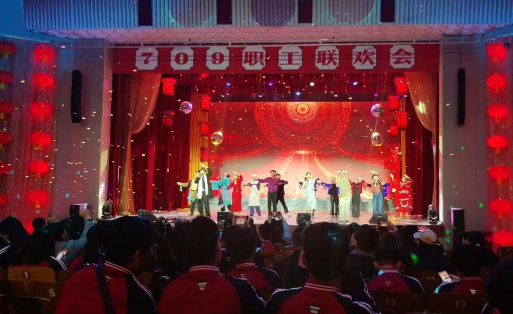 随后,师生一同走进职工俱乐部,观看了充满 70 年代风情的文艺演出。歌曲串烧、经典舞蹈、相声小品轮番上演,川剧变脸、喷火等非遗表演更是将现场气氛推向高潮,大家仿佛穿越时空,真切置身于那个激情燃烧的年代。演出最后,同学们积极参与齐声合唱《相亲相爱》,用歌声凝聚力量,传递家国情怀与青春担当。