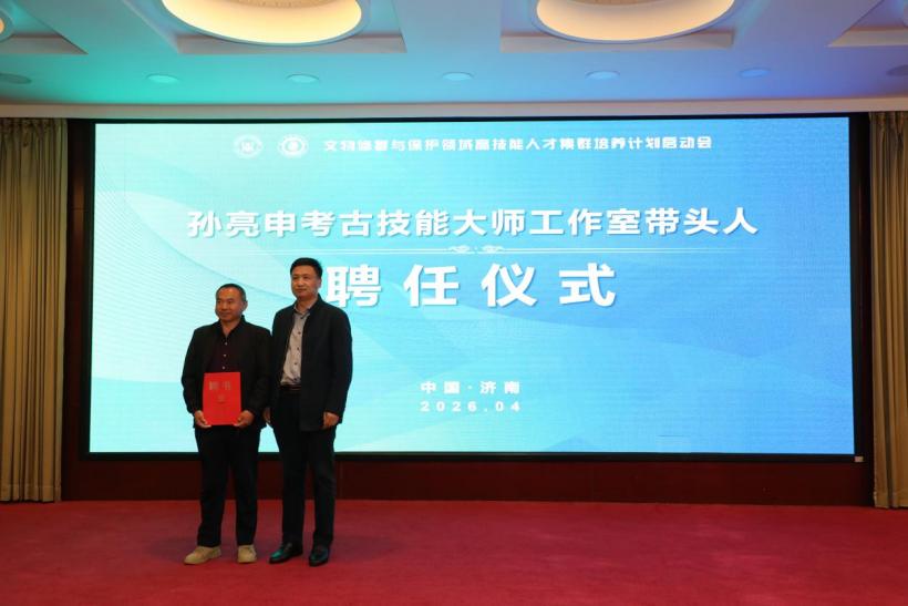 为考古技能大师工作室带头人、全国技术能手、全国文物大工匠孙亮申颁发聘书