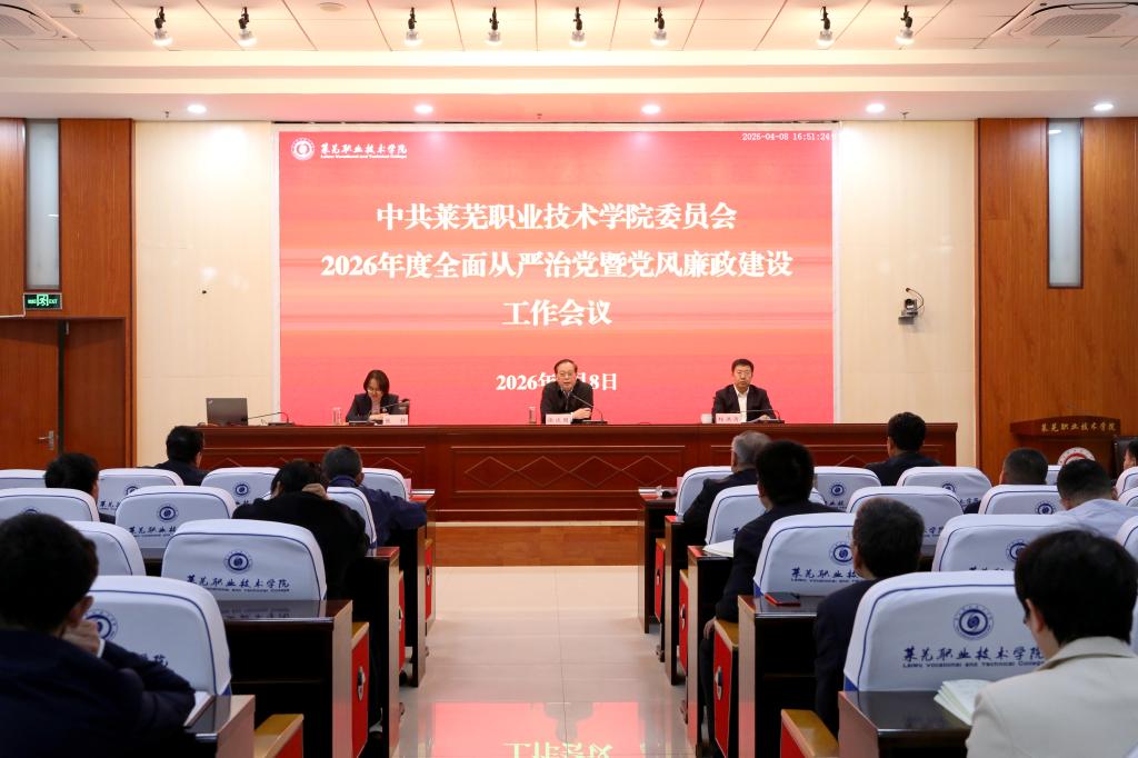 4月8日下午,学校召开2026年度全面从严治党暨党风廉政建设工作会议,深入学习贯彻习近平新时代中国特色社会主义思想和党的二十大及历次全会精神,传达学习上级相关会议精神,总结2025年学校全面从严治党和党风廉政建设工作情况,分析研判形势,安排部署今年重点工作,为实现“十五五”开好局、起好步,持续推动学校内涵式高质量发展提供坚强保障。党委书记徐运国出席会议并讲话,党委副书记、院长杨洪涛主持会议。学校领导班子成员、各单位中层干部、各基层党组织书记、组织员及纪检委员参加会议。