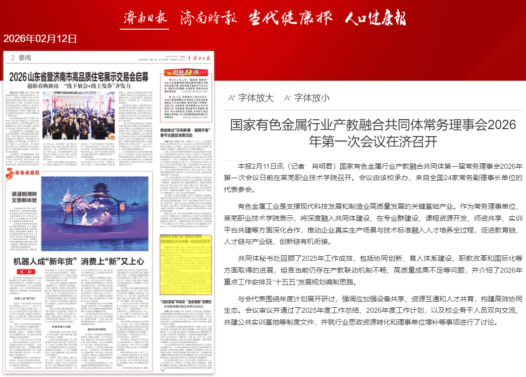 【济南日报】国家有色金属行业产教融合共同体常务理事会2026年第一次会议在济召开