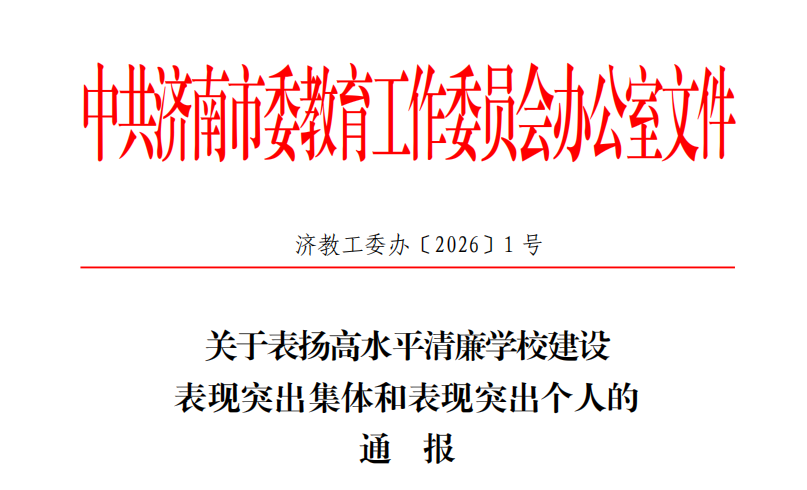 近日,中共济南市委教育工委印发《关于表扬高水平清廉学校建设表现突出集体和表现突出个人的通报》(济教工委办〔2026〕1号),人妻Av无码系列一区二区三区荣获“高水平清廉学校建设表现突出集体”称号,纪委(监察专员办公室)的李太公同志荣获“高水平清廉学校建设表现突出个人”称号,这是学校持续深化全面从严治党、扎实推进清廉学校建设取得的重要成果。