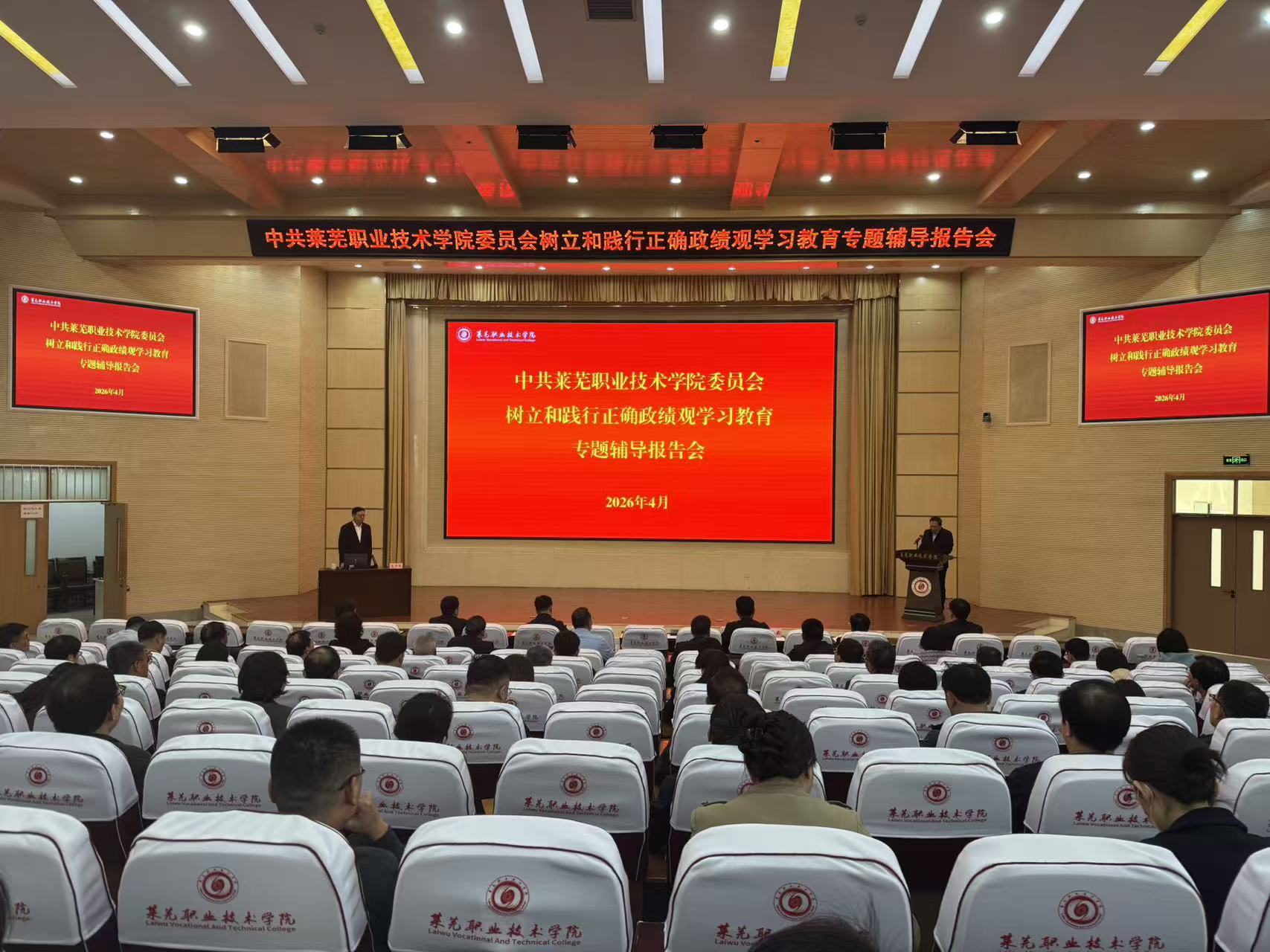 徐运国在主持报告会时强调,全校上下要以此次授课为契机,将学习成果转化为推动工作的实际成效。要深学细悟、筑牢思想根基,坚守为党育人、为国育才初心,把正确政绩观内化于心、外化于行,确保办学治校正确政治方向;要明辨义利、校准履职方向,正确处理公与私、义与利、局部与全局的关系,摒弃重显绩轻潜绩、重形式轻实效的倾向,以师生利益和学校长远发展为重,树立正确权力观、事业观、政绩观;要统筹推进、提升办学实效,坚持系统观念,聚焦“双高计划”建设、专业群发展、社会服务等关键领域,以“钉钉子精神”推动学校高质量发展;要涵养境界、永葆发展定力,立足当下、泽被长远,既抢抓机遇又深谋远虑,多做打基础、利长远、惠师生的实事,以“十年磨一剑”的韧劲,稳步推进高水平现代化职业院校建设。